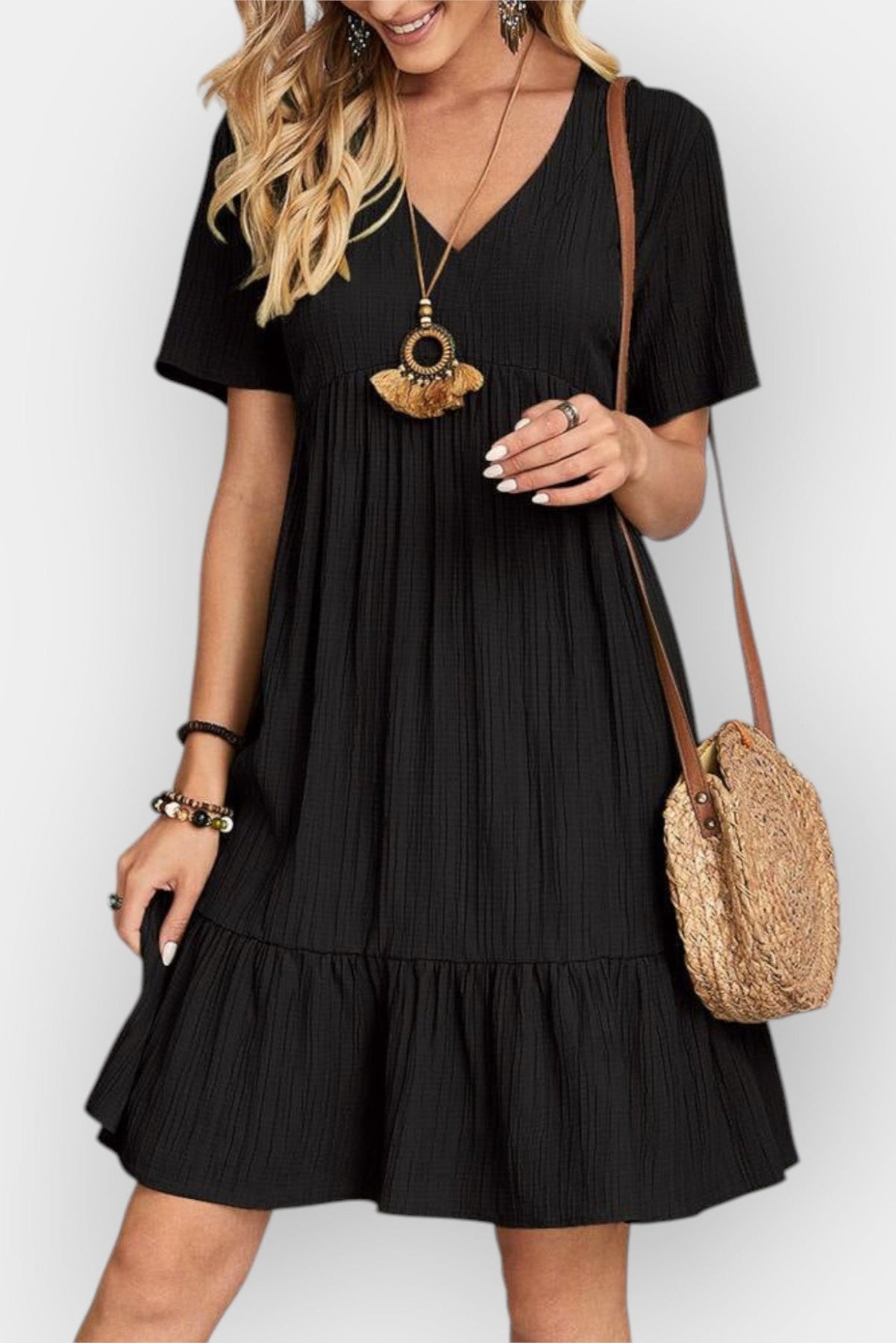 • Wyrafinowany dekolt w serek, który podkreśla dekolt