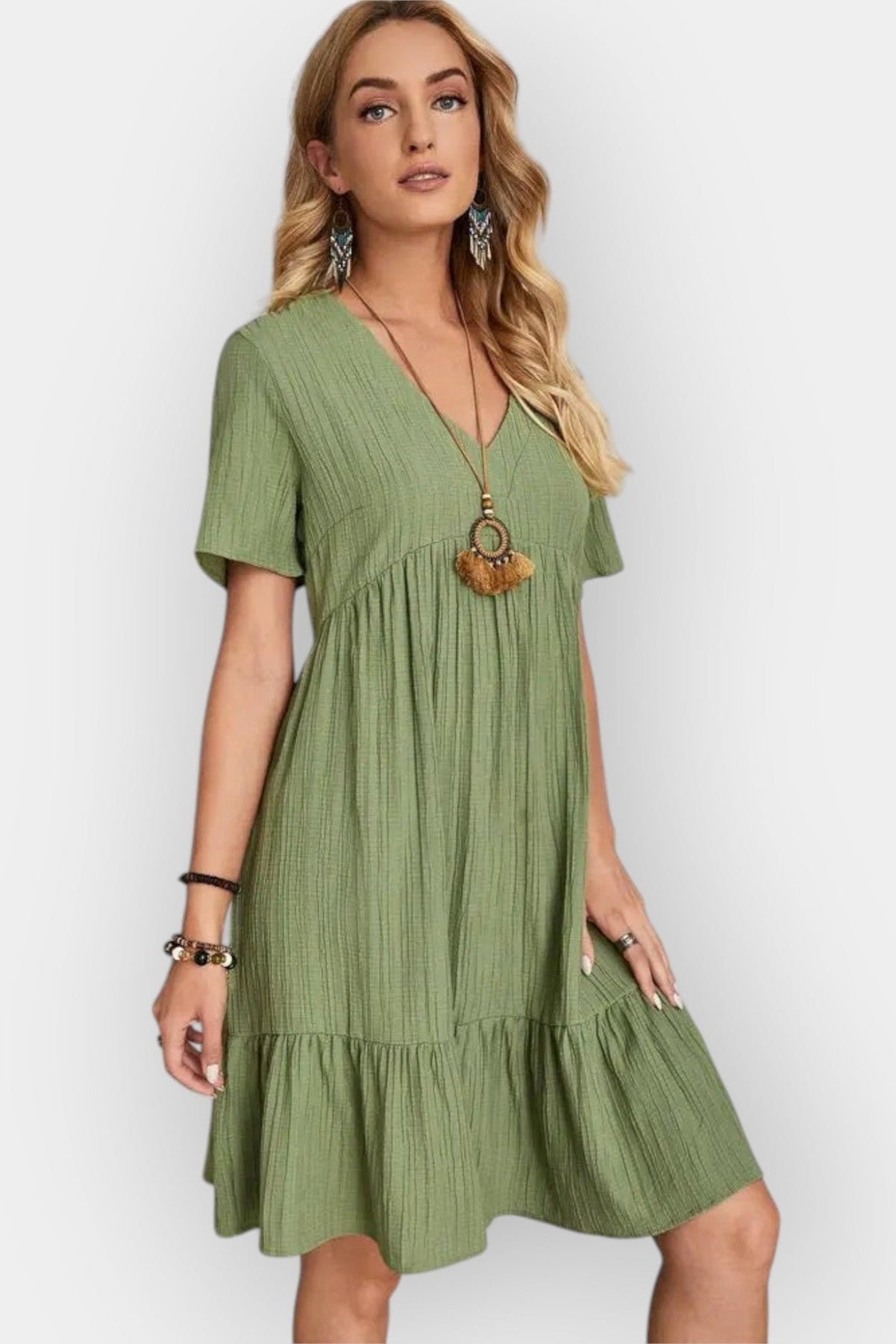 Rikke | Sukienka z dekoltem w serek sygnalizuje ponadczasową elegancję dzięki czystemu, minimalistycznemu krojowi i lekkiej, oddychającej jakości. Sukienka wykonana jest z lekkiego materiału, który zapewnia komfort przez cały dzień, a kobiecy dekolt w serek podkreśla dekolt z subtelną finezją. Uniwersalna sylwetka podkreśla wszystkie typy sylwetek i daje wiele możliwości osobistego stylizowania – od biura po wieczorowe zestawy. Za Rikke kryje się dbałość o rzemiosło i materiały wysokiej jakości oraz zobowiązanie do trwałego stylu, który przyciąga miłośników jakościowej garderoby. To inwestycja w garderobę o długiej żywotności i ponadczasowym uroku.